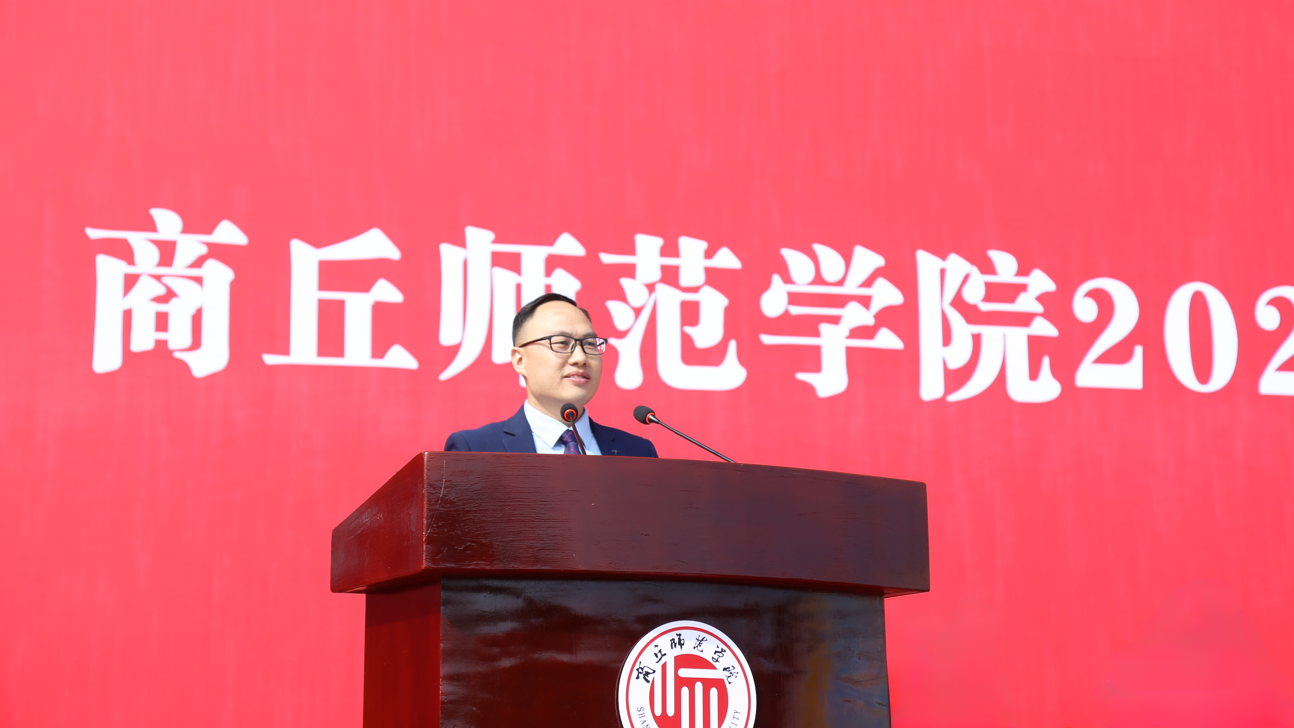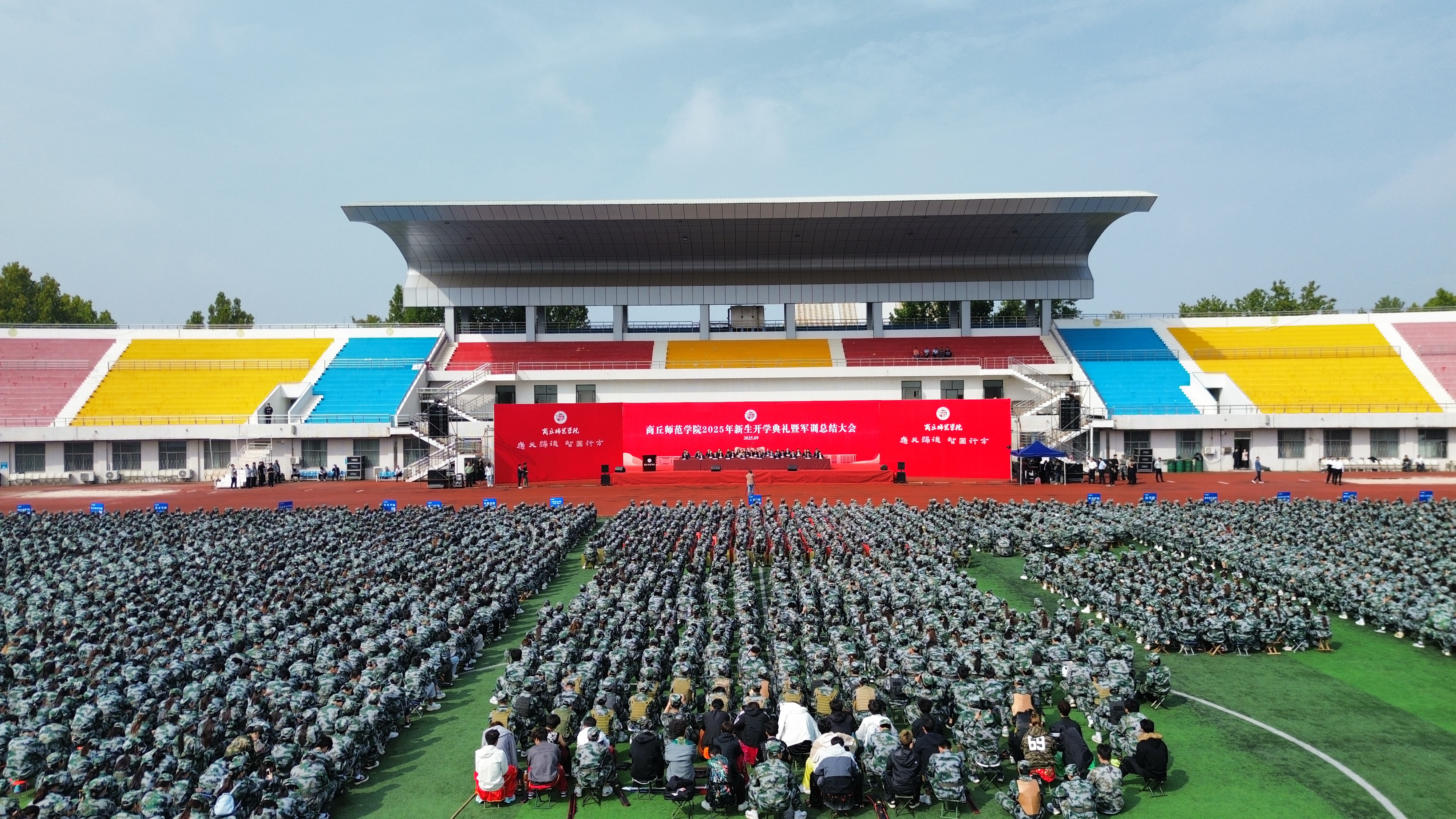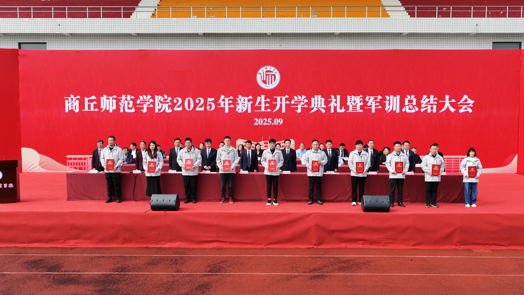 9月29日,商丘师范学院在梁园校区体育场举行2025级新生开学典礼暨军训总结大会。校领导张尚字、陈向炜、刘国庚、吴金山、何瑞强、张箭、王晓征、翟滨、刘澜涛、韩桂玲出席。校直有关部门和各学院负责人、2025级辅导员老师、教师代表和学生代表共同参加了活动。