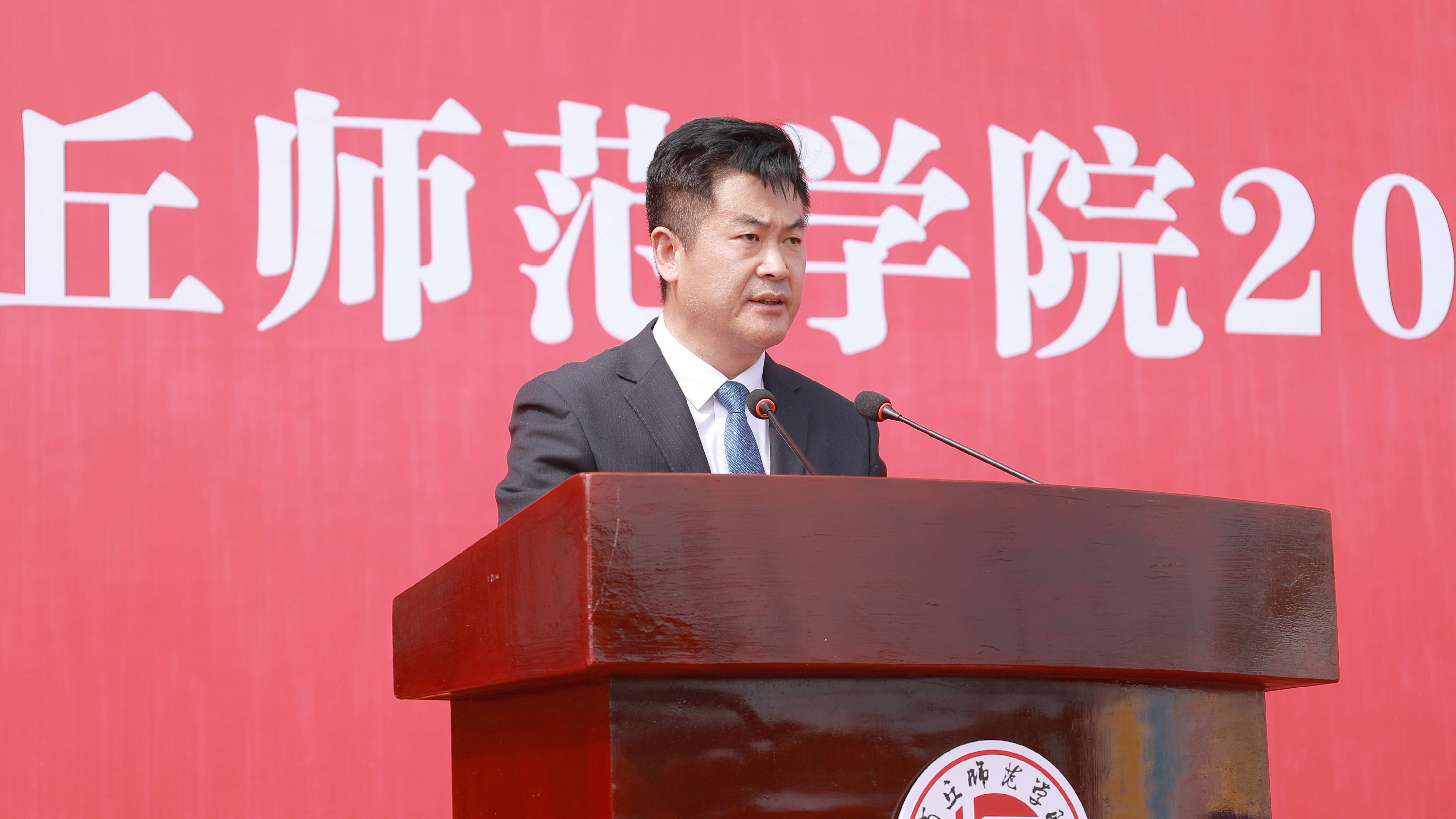 校长陈向炜以《勇立时代潮头 书写青春华章》为题作新生开学致辞。他代表学校向来自全国各地的2025级新同学表示热烈欢迎,并对圆满完成军训任务的新生们表示祝贺。陈向炜回顾了学校悠久的历史文化底蕴,强调了学校在新时代的使命与担当。他向同学们提出了四点期望:一要以“德”立身,做心怀家国的追光者;二要以“学”为先,做跨界融合的探索者;三要以“行”为要,做知行合一的实干者;四要以“创”为翼,做与时俱进的开拓者。希望同学们以商丘文化为根,以应天精神为魂,秉承“应天归德、智圆行方”的校训和“学以求真,行尚笃信”的校风,用奋斗书写无愧于自己、学校、时代的青春华章;学校将提供优质资源和平台,愿同学们在未来的四年中收获健全人格、独立精神和温暖心灵,在强国建设、民族复兴的壮阔征程上定义属于自己的精彩,书写充满希望的未来。