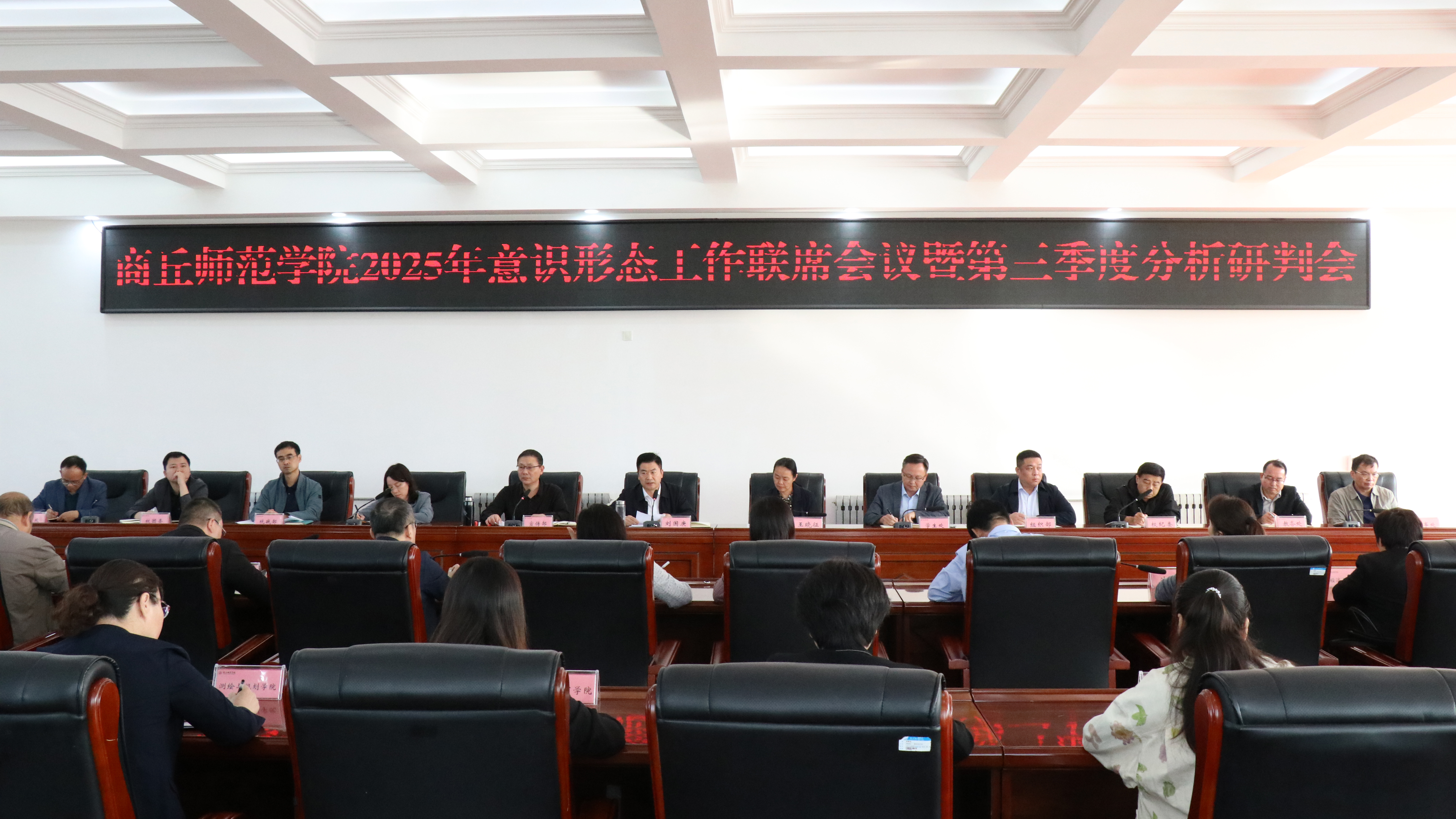 9月25日,学校召开2025年意识形态工作联席会议暨第三季度分析研判会,意识形态工作领导小组成员单位负责人、各基层党委、党总支书记参加会议。校党委副书记刘国庚主持会议并讲话。